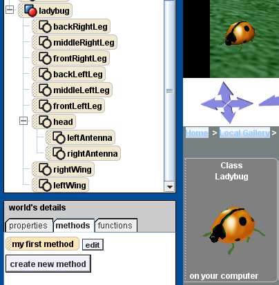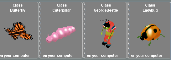 Dans l'application Alice, une coccinelle, un papillon sont des classes.