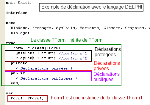 - protégée: l'accès aux données est réservé aux fonctions des classes héritières, c'est-à-dire par les fonctions membres de la classe ainsi que des classes dérivées