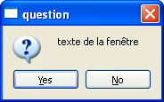 QMessageBox::question(this,"Question","texte de la fenêtre");