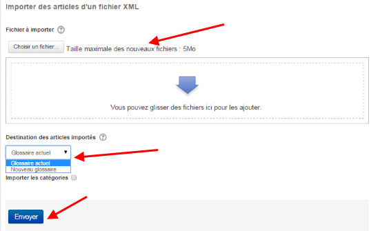 L'import et l'export permet les échanges entre collègues ou encore la copie de glossaires dans différents cours.
