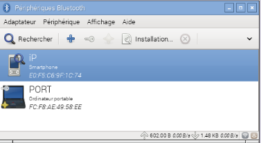 Un double clic sur l'icone suivi d'une recherche présente les équipements à portée de connexion :